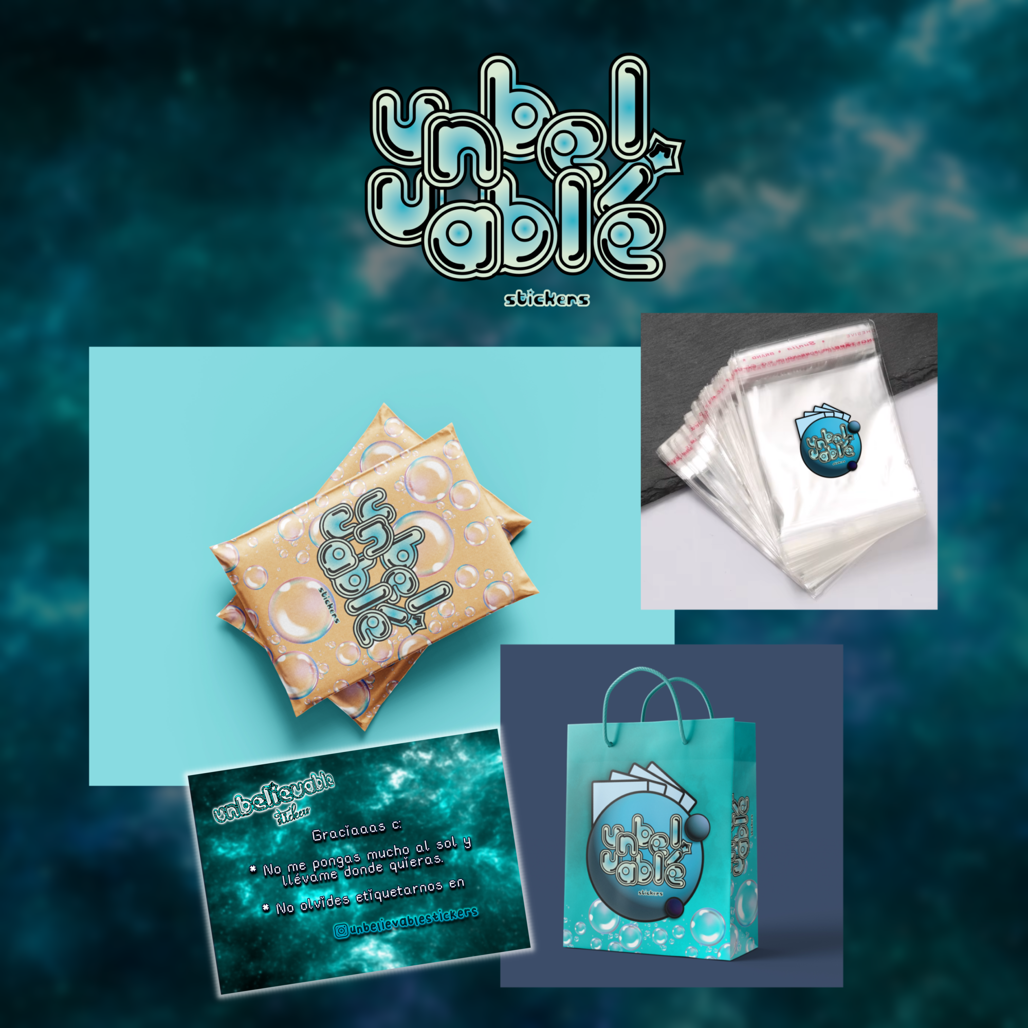 Estos son los distintos paquetes que tenemos, cada uno con su tarjetita correspondiente, unos para envío (regiones o fuera de Chile), otras bolsitas cuales entregamos en la rapidez de la venta fuera de conciertos y las otras bolsitas de regalo o pedido personalizado.