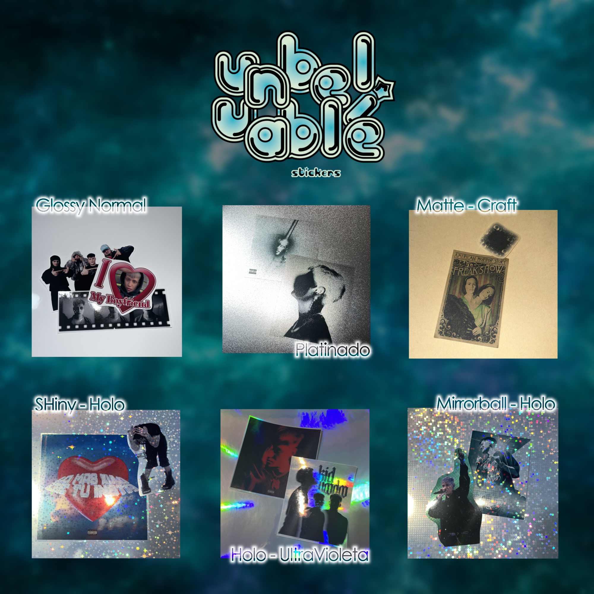 Y los holográficos, tornasol normales, brillitos o "shiny" como les llamamos, los mirrorball (efecto de 3D en tramas de círculos) y los Platinados, color plata con mucho brillo.